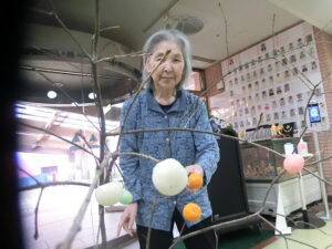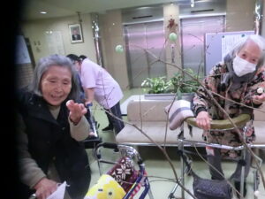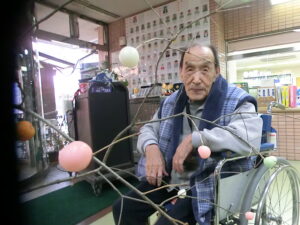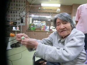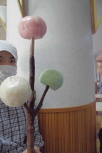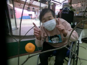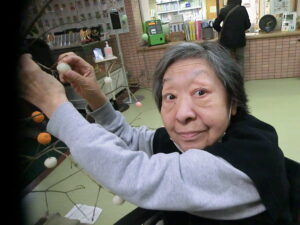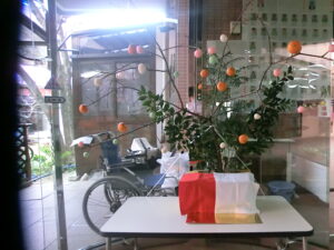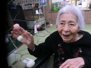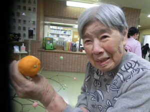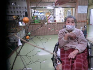 ご利用者様と一緒にお団子とみかんを飾りつけしました。