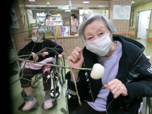歓声をあげて どんど焼きを楽しんでいらっしゃいました。