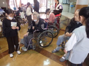 かわいい子どもたちに囲まれて、ご利用者様方の目尻がず~っと下がっていらっしゃいますね😊