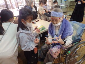 かわいい子どもたちに囲まれて、ご利用者様方の目尻がず~っと下がっていらっしゃいますね😊