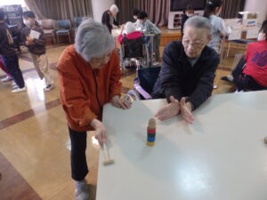 何十年ぶりに遊ぶ 昔の遊びに、ご利用者様方も童心に返って楽しまれていました。